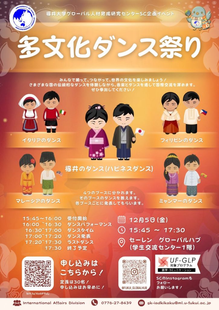 12月5日(金)に、いろいろな国のダンスを学んで、一緒に踊って楽しむイベントを開催します!