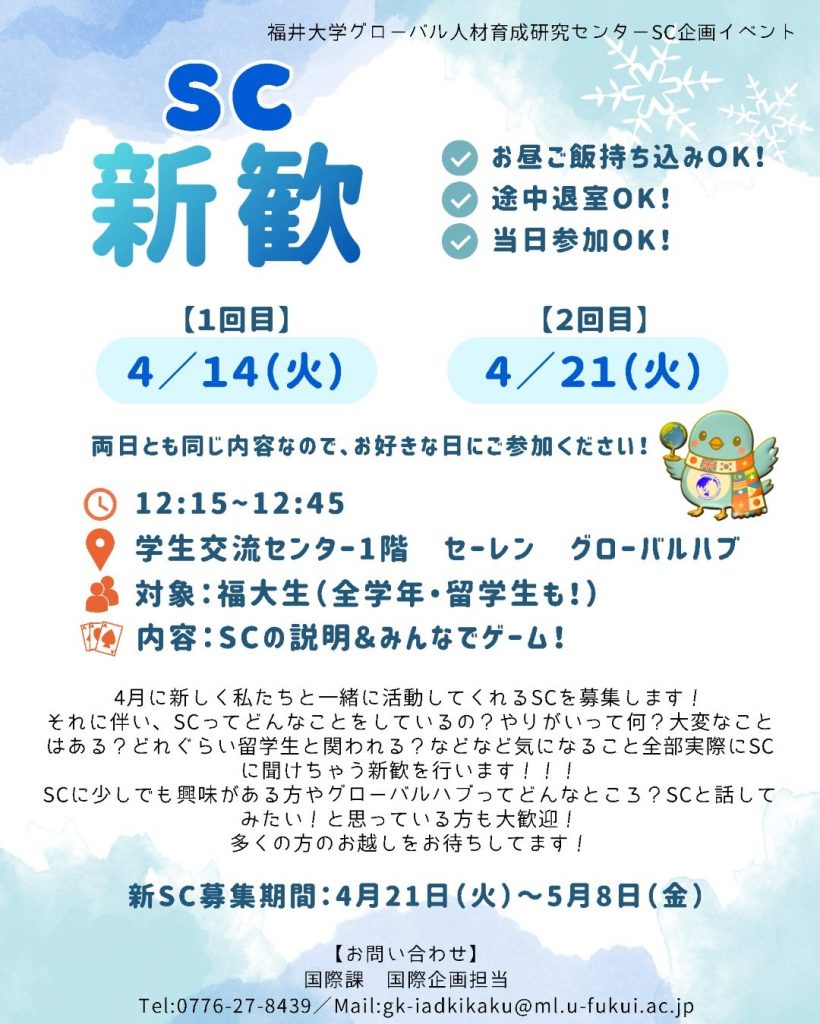 SCに興味のある方のために、SC新入生歓迎会を開きます!